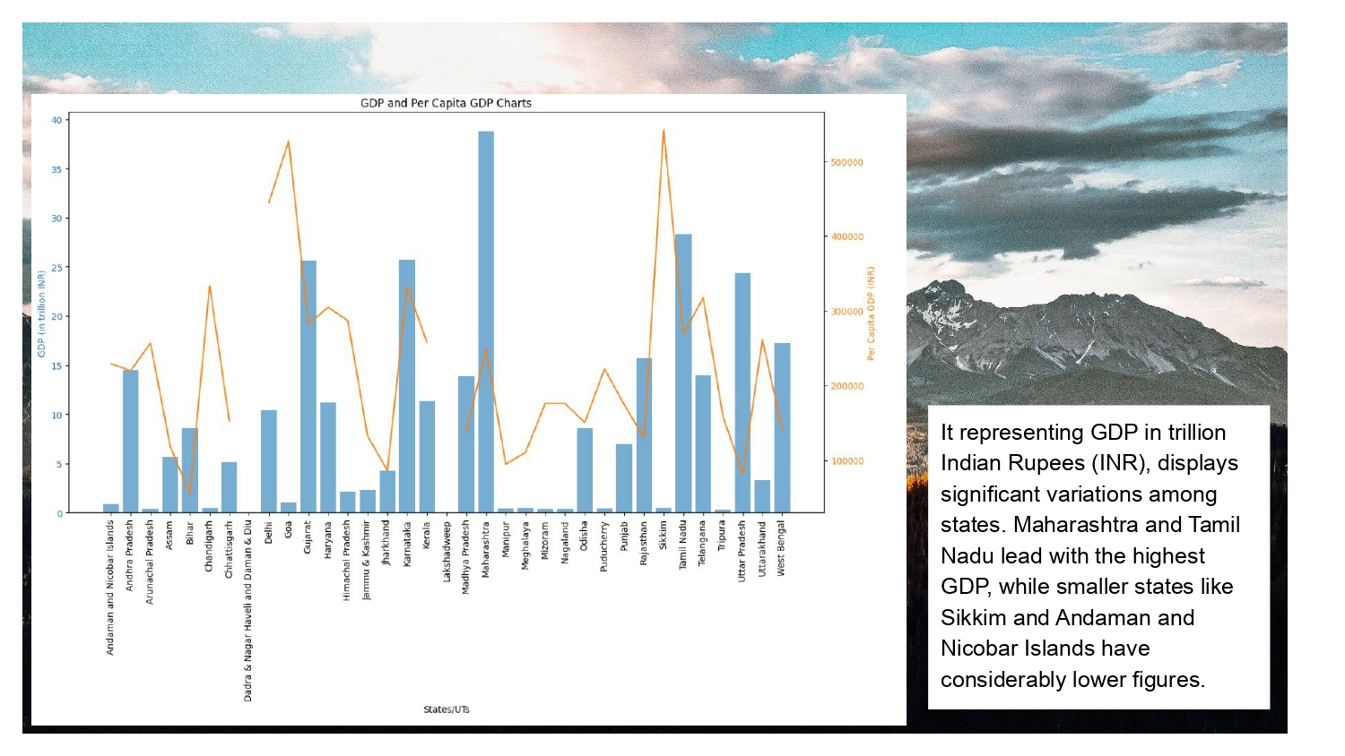 - Smaller states like Sikkim and Andaman and Nicobar Islands have considerably lower GDP figures.