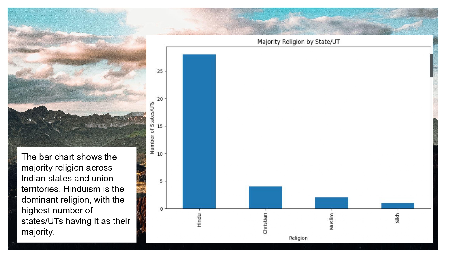 - Hinduism is the dominant religion with the highest number of states/UTs having it as their majority religion.