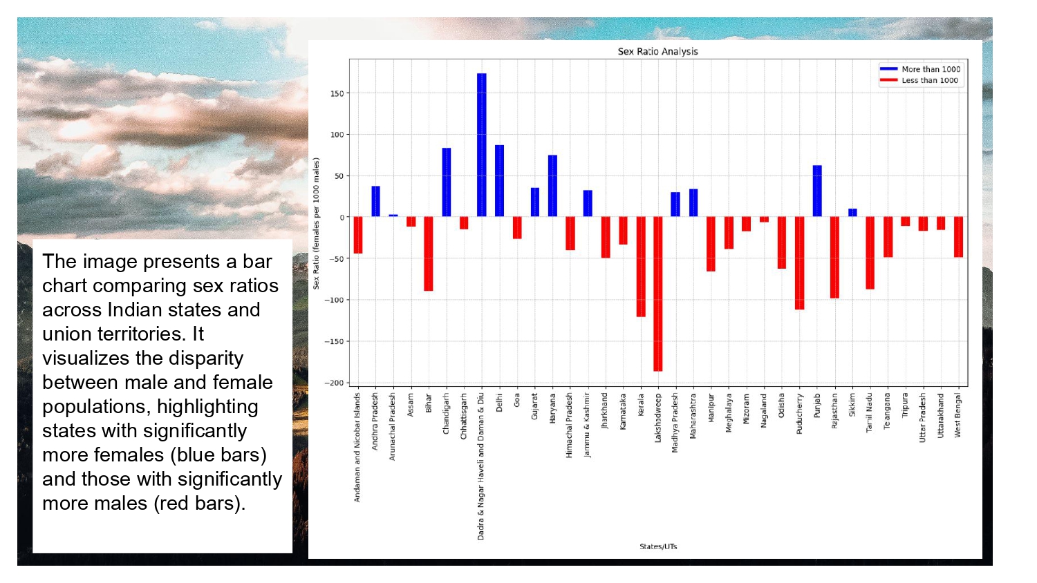 - Sex ratio comparison across Indian states showing disparity between male and female populations.